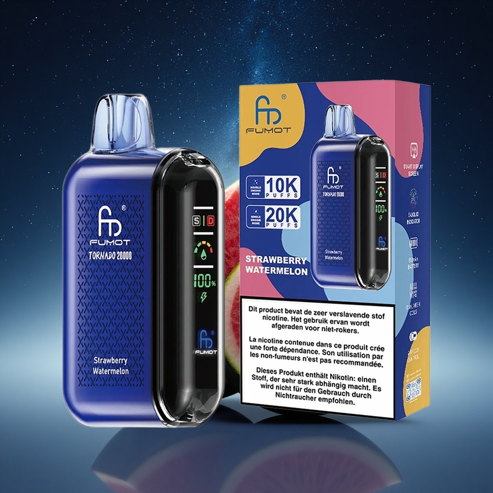 Fumot Tornado 20000 Puffs Aardbei Watermeloen Dual Mesh Coil 20ml 850mAh Smart Display