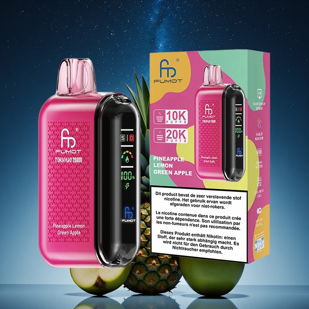 Fumot Tornado 20000 Puffs Ananas Citroen Groene Appel Dual Mesh Coil Smart Display