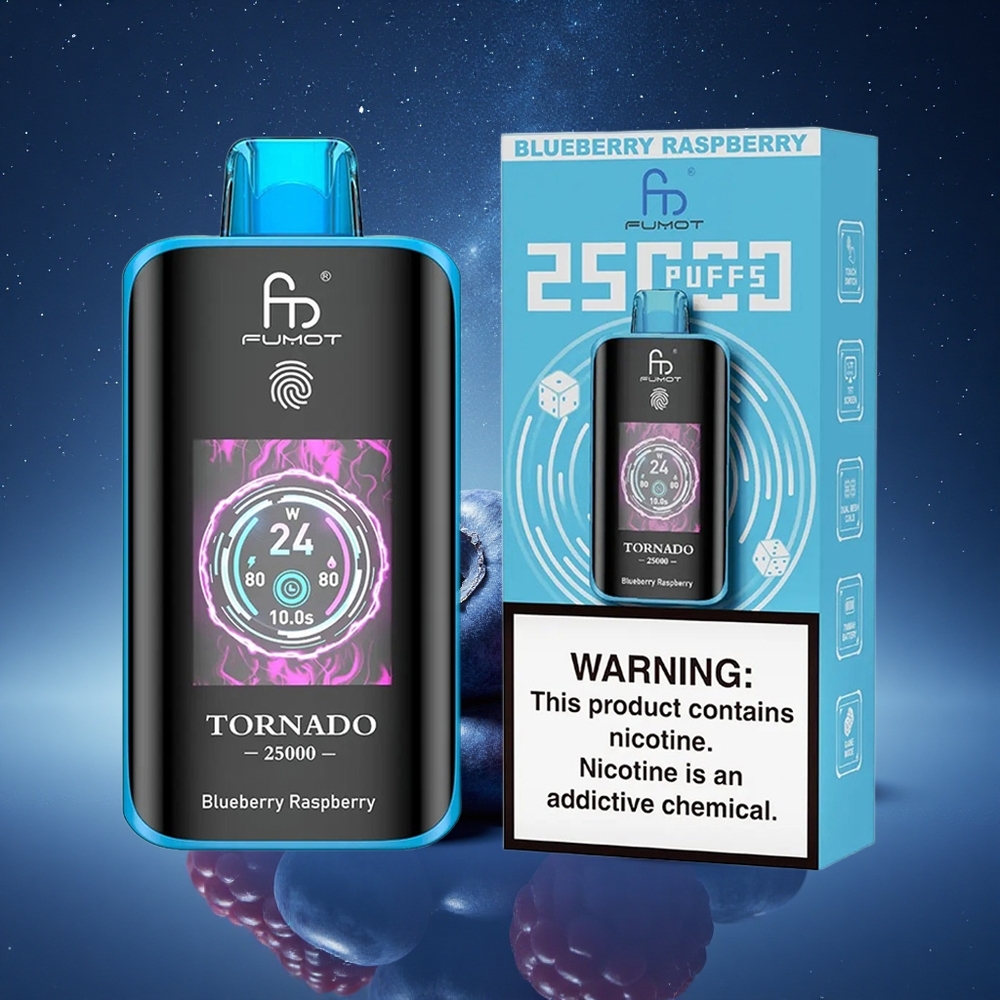 Fumot Tornado 25000 Puffs Blauwe Framboos HD Scherm 700mAh Type-C