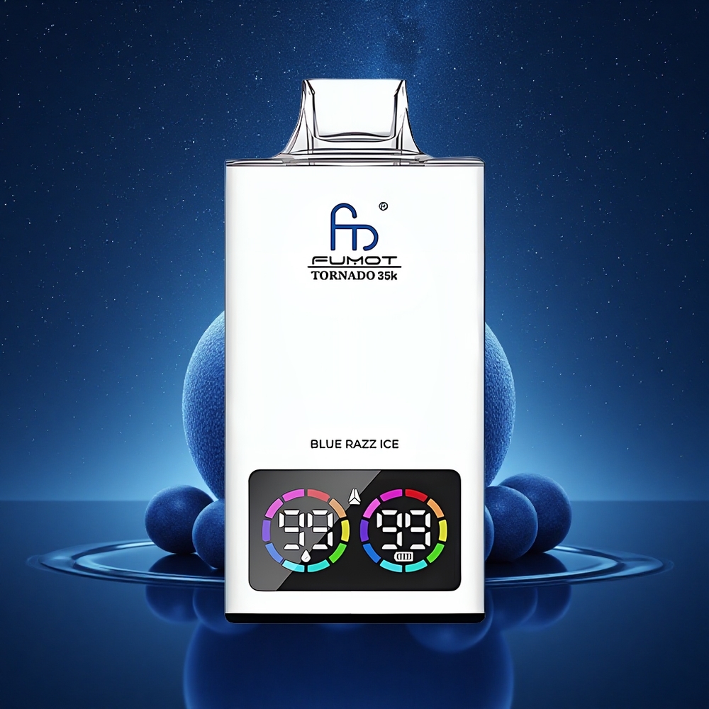 Fumot Tornado 35000 Puffs Blauwe Framboos IJs met Dubbele Mesh Coil en RGB Verlichting