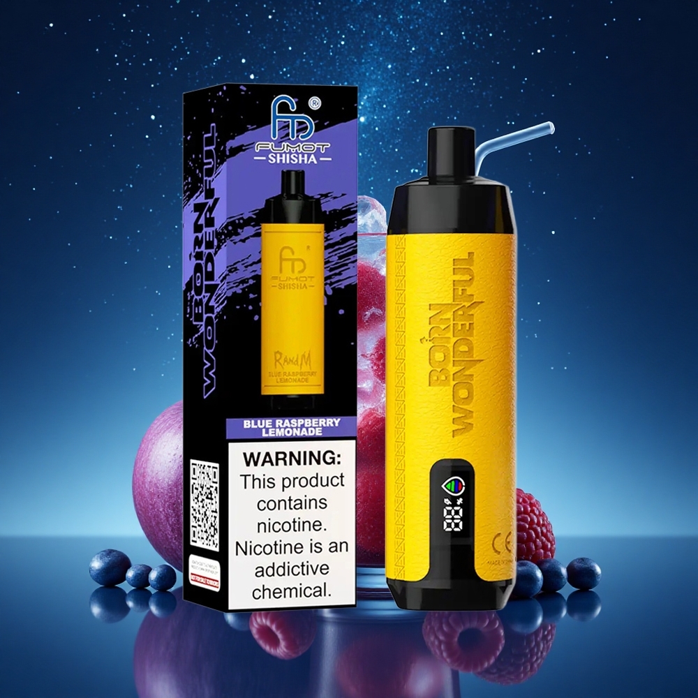RandM Fumot Shisha 10000 Puffs Blauwe Framboos Limonade met LED Indicatie en Type-C Poort