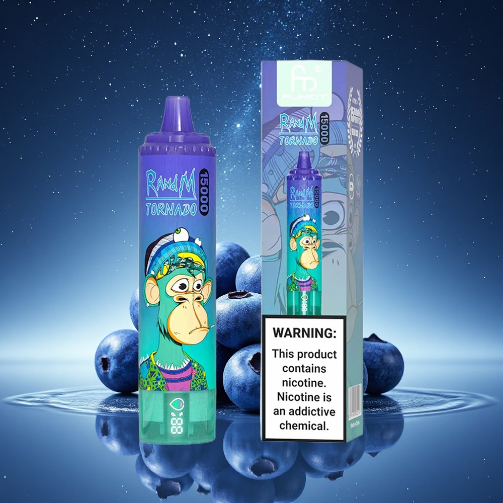 RandM Fumot Tornado 15000 Puffs Blauwe Bes Op IJs Met 25ml Vloeistof En Mesh Coil