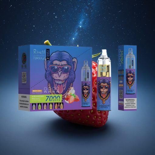 RandM Fumot Tornado 7000 Puffs Aardbei Rode Stier 7000 Mesh Coil Type-C