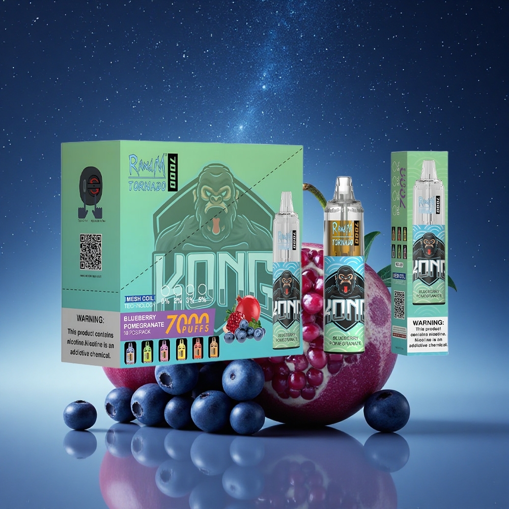 RandM Fumot Tornado 7000 Puffs Blauwe Bes Granaatappel Type-C RGB Mesh