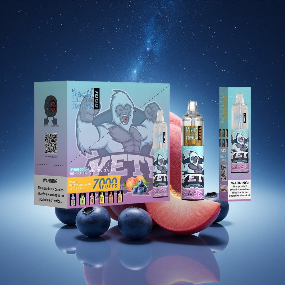 RandM Fumot Tornado 7000 Puffs Perzik Bosbes Snoep 14ML Mesh Type-C