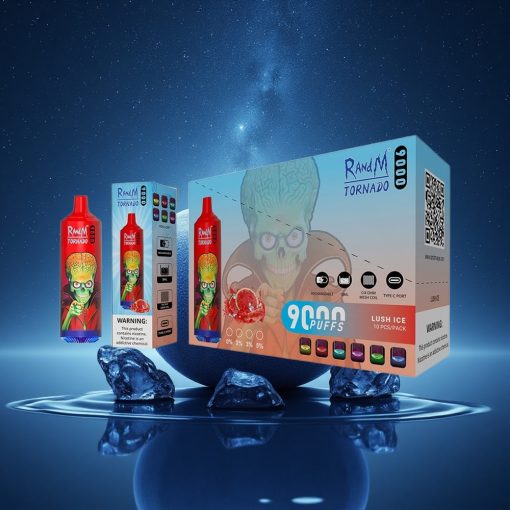 RandM Fumot Tornado 9000 Puffs Frisse IJs Mesh Coil RGB Scherm 18 mL